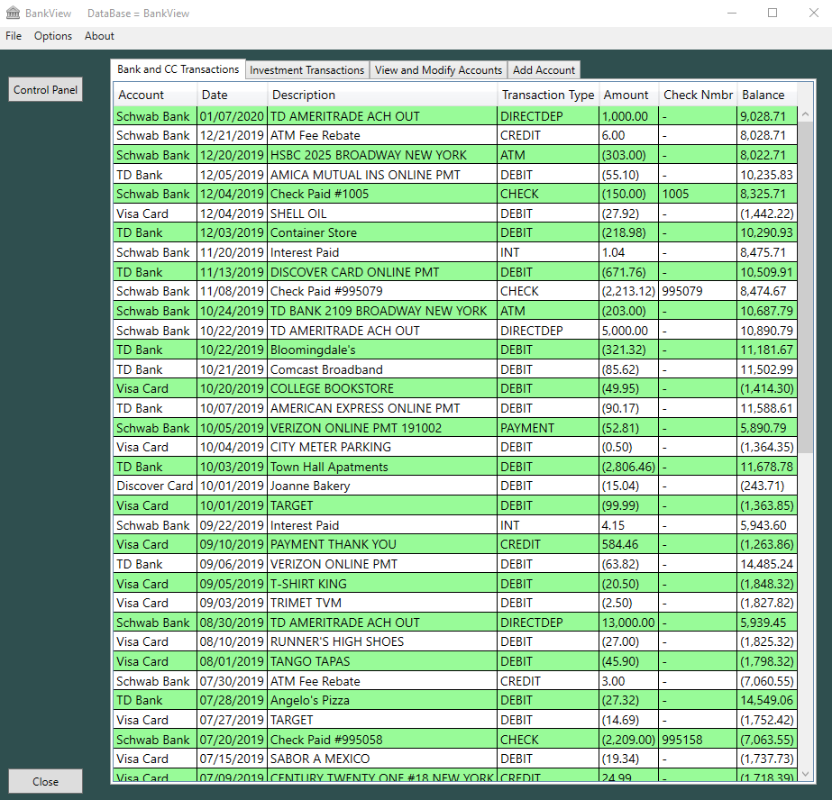 If you have MS SQL Server Database on your system, BankView gives you the option of storing you transactions there. Otherwise an SQLite database is used.